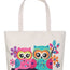 Imported CUTE OWL COUPLE CARTOON PRINT ECCO TOTE BAG 100% POLYESTER Front Texture Is More Rough Than Back Side. Zipper Top Closure Inside Open Wall Pocket Soft Inside Lining White FBJ