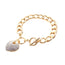 Imported HEART STONE METAL LINK CHAIN TOGGLE CLASP BRACELET Gold FBJ