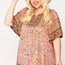 Imported XL.1XL.2XL Floral Print Lace Up Flutter Sleeve Top 100% Rayon Coral Mix GIG
