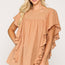 Imported S.M.L Textured Ruffle Sleeve Tunic Top with Back Keyhole 100% Rayon Apricot GIG