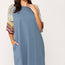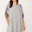 Solid Side Pocket Shift Dress with Contrasting Printed Dolman Sleeves
