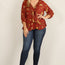 Imported1XL.2XL.3XLPlus size floral print 3/4 sleeve top with v-neckline and relaxed fit100% Polyester Rust HAU
