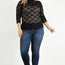 Made In U.S.A1XL.2XL.3XLPlus size sheer lace fitted top with 3/4 sleeves and a round neckline57% Cotton 35% Nylon 8% Spandex Black HAU