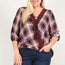 Imported 1XL.2XL.3XL Plaid 3/4 sleeve top with hi-lo hem, v-neckline, and relaxed fit 100% Rayon Wine HAU