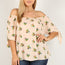 Imported 1XL.2XL.3XL Plus size floral print, top with off the shoulder sleeves and bow 95% Polyester 5% Spandex Blush HAU