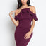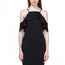 Imported S.M.L A knit mini dress featuring a halter neck, open shoulders with ruffled trim, cami straps, and a bodycon silhouette. 95% Polyester 5% Spandex Black IRI