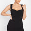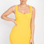 A knit ribbed mini dress in a solid color, featuring a sweetheart neckline, front ruched detail, sleeveless, ruffled shoulder straps, a squared back, and a bodycon silhouette