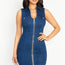 Imported S.M.L SLEEVELESS DOUBLE ZIPPER COLLAR DRESS 42% Cotton 28% Rayon 28% Polyester 2% Spandex Dark Denim IRI
