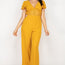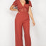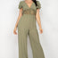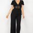 ImportedS.M.LA woven jumpsuit featuring a v-neckline, lace accents, short ruffle sleeves, a back keyhole closure, and a wide leg fit. 100% Polyester Black IRI