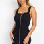 Imported S.M.L A woven mini dress featuring a solid color, front zip closure, thick straps, square back and neck, and a bodycon silhouette. 70% Rayon 26% Nylon 4% Spandex Black IRI