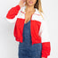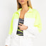 Imported S.M.L A woven windbreaker jacket featuring color blocking, long sleeves, a zip front closure, collar, elastic cuffs, and an elastic hem. 100% Polyester Lime/White IRI