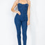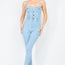 Imported S.M.L A denim jumpsuit featuring adjustable cami straps, cinched waist, princess seams, belt loops, chest flap pockets, button-down, and a front zipper closure 45% Cotton 30% Rayon 23% Polyester 2% Spandex Dark IRI