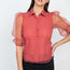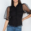 Imported S.M.L A top featuring an all over dot print, contrasting panels, short puffed sleeves, mesh material, button down front, and a basic collar. 100% Polyester Black IRI