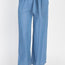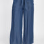 Imported S.M.L A woven pair of pants featuring a denim wash, an elastic waist, waist tie, and a wide leg fit. 100% Lyocell Dark Wash IRI