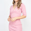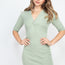 Imported S.M.L A knit ribbed mini dress, solid color, v-neckline with front knot, short sleeves, and a bodycon silhouette,. 100% Polyester Black IRI