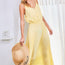 Imported S.M.L Adjustable Shoulder Strap Button Down Waist Elastic Bottom Contrast Lace Maxi Dress 95% Rayon 5% Spandex Yellow MAI