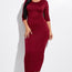 Made In U.S.A S.M.L solid 3/4 sleeve midi dress with back cut out 96% Polyester 4% Spandex Wine MIS