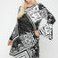 Made In U.S.A 1XL.2XL.3XL Cheetah print dress featuring flattering bell sleeves and a round neck. 33% Rayon 64% Polyester 4% Spandex Black/White POL