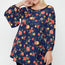 Made In U.S.A 1XL.2XL.3XL Floral, bubble sleeve tunic featuring a round neck and flattering empire waistline 33% Rayon 64% Polyester 4% Spandex Navy Multi/Floral POL