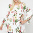Made In U.S.A 1XL.2XL.3XL Floral, bubble sleeve tunic featuring a round neck and flattering empire waistline 33% Rayon 64% Polyester 4% Spandex Off White/Floral POL