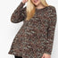 Made In U.S.A 1XL.2XL.3XL Cheetah print tunic featuring a flattering A-line silhouette, and long sleeves. 33% Rayon 64% Polyester 4% Spandex Charcoal Cheetah POL