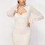 Imported S.M.L RUCHED CUT-OUT SHEER LONG SLEEVE MINI DRESS 95% Polyester 5% Spandex Cream PRI