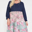 Imported 1XL.2XL.3XL FLORAL CONTRAST SHIRRING BABYDOLL DRESS 10% Polyester 85% Rayon 5% Spandex Multi RKA