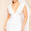 Made In U.S.A S.M.L SHOULDER PAD ATTACHED. OPEN V SHAPE BACK WITH SELF TIE NECK. SHIRRING DETAIL. ASYMMETRIC HEM 96% Polyester 4% Spandex Ivory SYM