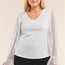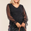 Imported IXL.2XL.3XL solid, relaxed fit, deep plunge V-neckline, long polka dot mesh balloon sleeve with stretchy gathered hem, unlined, non-sheer, stretchy, office wear, business casual, elegant, stylish, fall/winter season 96% Polyester 4% Spandex Black TSH