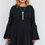 Plus Size Black Lace Up Detail Bell Sleeve Dress