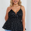 Black all over sequin, sleeveless, adjustable cami straps, v-neck, peplum, lined, some stretch, date night, clubwear, fun, festive 100% Polyester