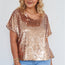 Imported XL.1XL.2XL.3XL Rose gold, sequin, short dolman sleeve, crew neck, relax fit, lined, stretchy, date night, clubwear, fun, festive 100% Polyester Rose Gold TSH
