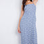 Imported S.M.L white feather floral print, minimalist print, boho, chic, side button detail, accordion cami straps, cinched waistline, square neck, bust darts, casual, summer dress, midi length, unlined, some stretch. 100% Polyester Sky TSH