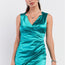 Imported S.M.L Emerald green, satin effect, glossy finish, wrap front, uneven hem, sleeveless, deep plunge V-neckline with cut-out edge details, back zipper closure, fitted, unlined, stretchy, mini length, chic, cocktail party & club wear, night out, date night, bodycon, sexy, fall/winter chic collection 88% Polyester 12% Spandex Emerald TSH