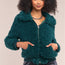 Imported S.M.L Hunter green, long sleeve, faux fur, folded collar, front zip up detail, relaxed fit, cropped length, unlined, cute, girly, casual, light, office look, fall/winter 100% Polyester Hunter Green TSH