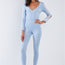 Imported S.M.L Light blue, solid, light wash, denim, white lace up side seams, v-neck and back, long sleeve, zipper back, tight fit, slightly stretchy, light weight, sexy, summer 90% Cotton 10% Spandex Light Blue TSH