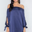 Navy Blue Satin Open Sleeve Satin Mini Dress