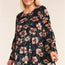 Plus Size Floral Print Velvet Long Layered Hem Sleeve Mini Dress