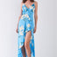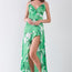Imported S.M.L satin, multicolor floral print, sleeveless, plunging V-neckline with front inner hook&eye closure, side zipper fly with inner hook&eye closures, self-tie back detail, ruffle trim, side open slit detail, maxi length, partially lined, non-stretch, non-sheer, casual chic, elegant, comfy, vacation vibe, soft to touch, romantic, date look, spring/summer collectio 100% Polyester Green TSH