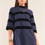 Navy, velvet trim detail, round neck, open back keyhole, velvet self-tie closure, 3/4 sleeve, unlined, non-stretch, mini length, casual, night out, date night, spring/summer season