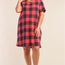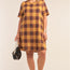 Plus Size Checkered Round Neck Short Sleeve Sweater Mini Dress