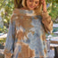 Imported 1XL.2XL.3XL Multicolor tie-dye, bateau neckline, long sleeve, self-tie draw-string bottom trim, relaxed fit, unlined, stretchy, super soft to touch, casual, sporty, sportswear, comfy, loungewear, warm 65% Polyester 31% Rayon 4% Spandex Brown Blue TSH