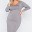 scoop neck, long sleeves, solid, bodycon silhouette, midi length, unlined