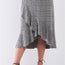 Imported 1XL.2XL.3XL Grey, multi, plaid, high-waisted, wrap, asymmetrical flounce hem, ruffle, stretchy, elasticated waist, business casual, office wear 85% Polyester 12% Rayon 3% Spandex Plaid Grey TSH