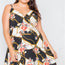 Plus Size Black Floral Belt & Chain Printed Mini Dress