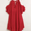 Imported S.M.L Ruffled Cold Shoulder Maxi Dress with Front Tassel Tie 100% Rayon Chili Powder UMG
