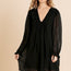 ImportedS.M.LSheer Polka Dot Fabric Long Ruffle Sleeve V-Neck Dress with Lining and Gathered Neck DetailPolyester BlendBlack UMG