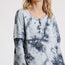 Imported S.M.L Tie Dye Round Neck Ribbed Button Front Top with Round Hem 75% Cotton 25% Spandex Olive Mix UMG