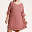 Imported XL.1XL.2XL Linen Blend Round Neck Half Sleeve Dress with Chest Pocket and Frayed Edge Detail 55% Linen 45% Rayon Rose Clay UMG