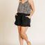 Imported XL.1XL.2XL Linen Blend Elastic Waist Ruffle Hem Shorts with Pockets 55% Linen 45% Cotton Black UMG